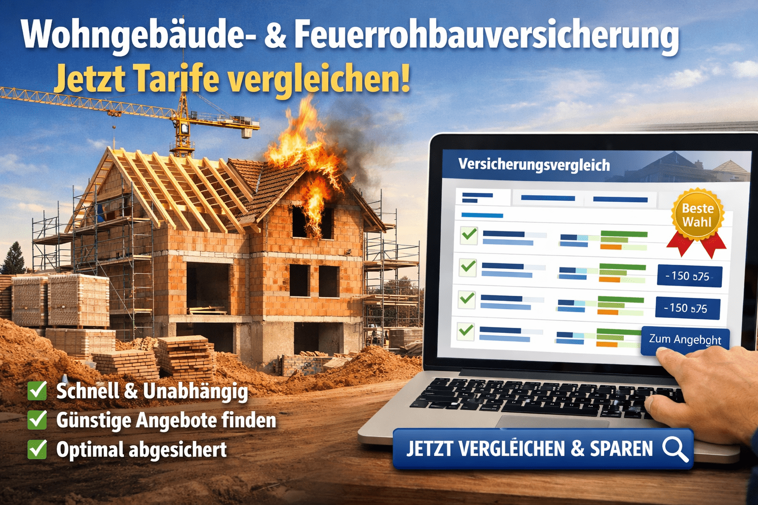 Wohngebäude- & Feuerrohbauversicherung vergleichen – günstig & sicher